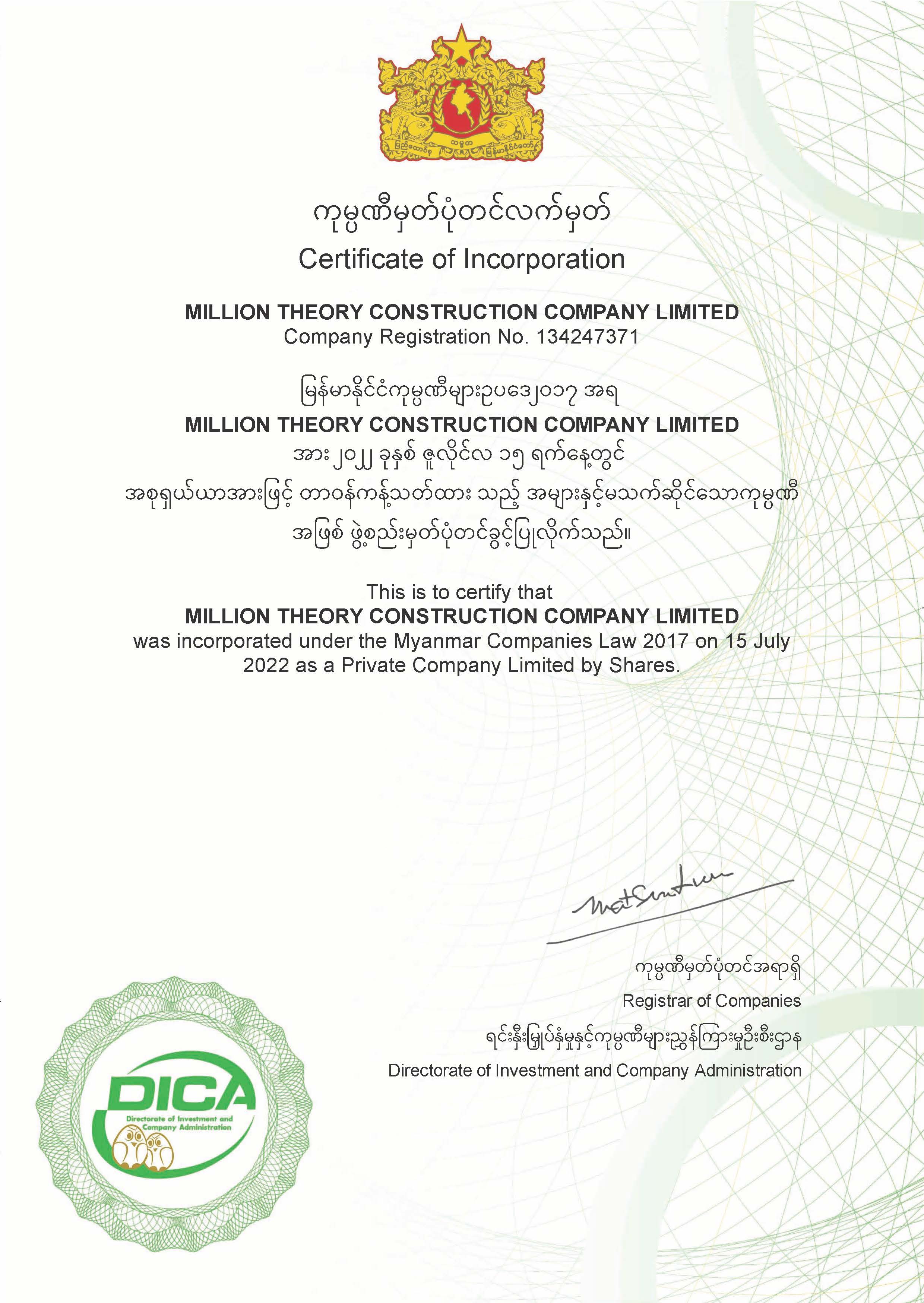 To be one of the top solution provider in Construction Infrastructure, production, servicing of building, production and equiptments.